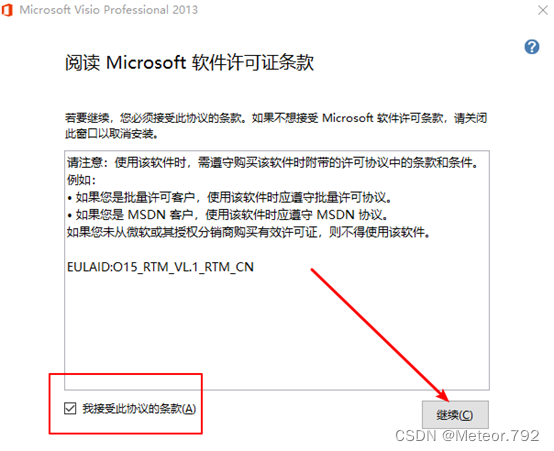 2.勾选我接受此协议的条款,继续