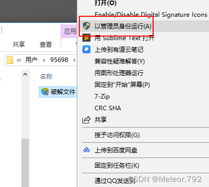5.打开第一步解压的文件夹中破解文件夹,鼠标右键以管理员身份运行