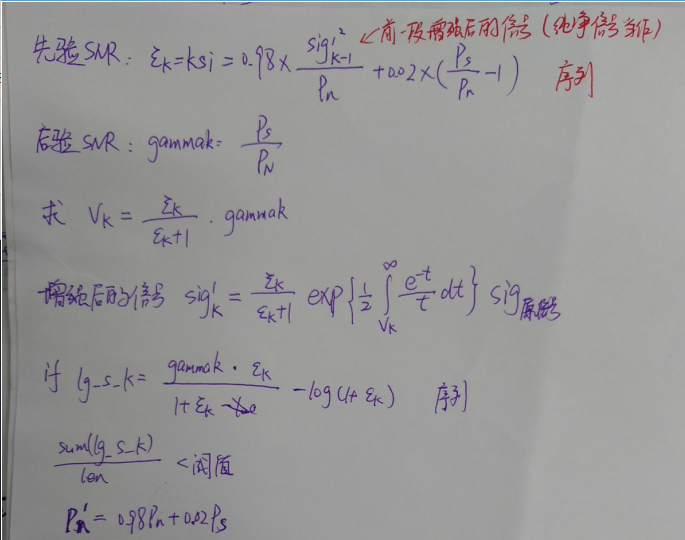 在非语音片段(语音开始之前几帧或语音间隙)估计的噪声能量谱;然后用判决引导法估计先验信噪比;
