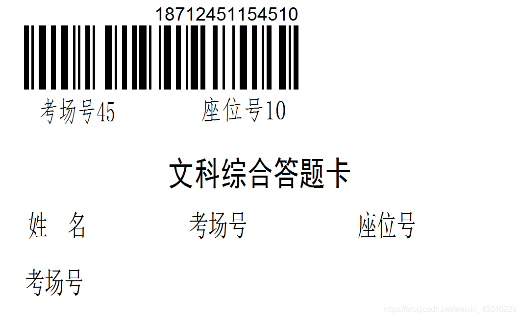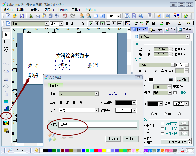 4.条码下方的文字,仍然使用文字工具进行输入。最后带有条码、座位号、考场号信息的答题卡标签就完成了。