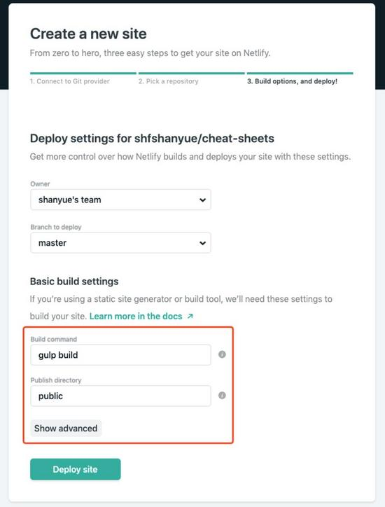 本篇文章讲解如何结合 netlify 去部署你 github 上的前端应用。将以我的个人仓库 cheat-sheets 部署到 cheatsheeets.netlify.com/git 作为示例进行演示。
