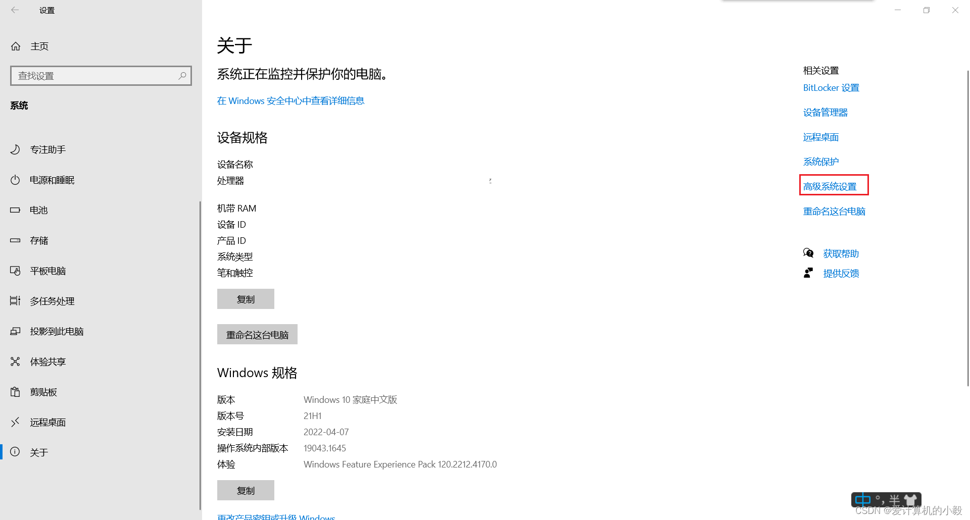第三步 打开windows设置->选择系统->点击关于->单击高级系统设置