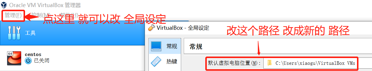 第一步:更改全局变量 默认虚拟电脑的位置 (这一步 是为了以后 你虚拟机 创建在新路径中)