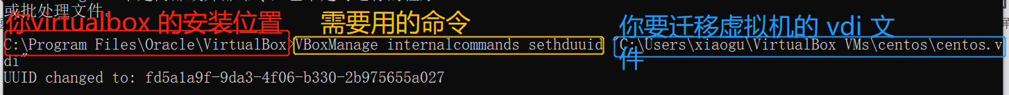 第二步:在 virtualbox的安装路径内 执行这个命令 VBoxManage internalcommands sethduuid