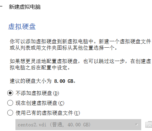 (不添加 是为了 把之前虚拟机的 vdi文件 放到你新建的 虚拟机 文件夹下)