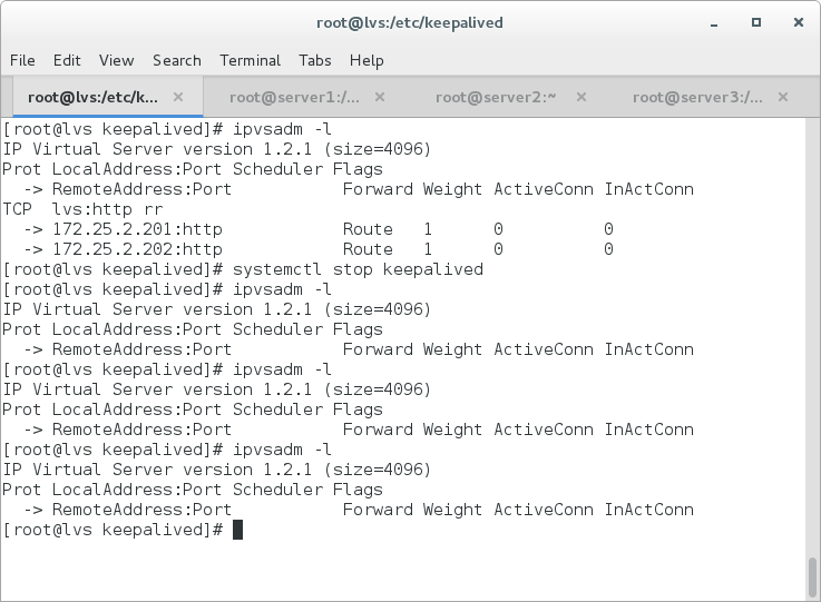 测试1:后端服务器关闭和开启,看IPVS表的变化