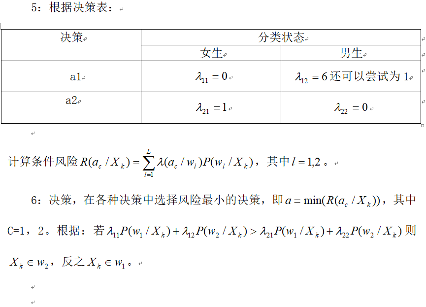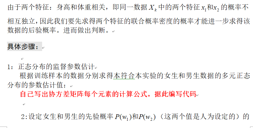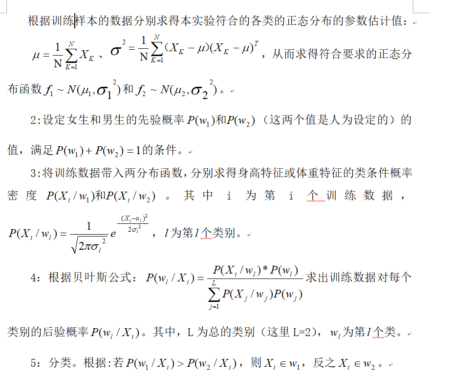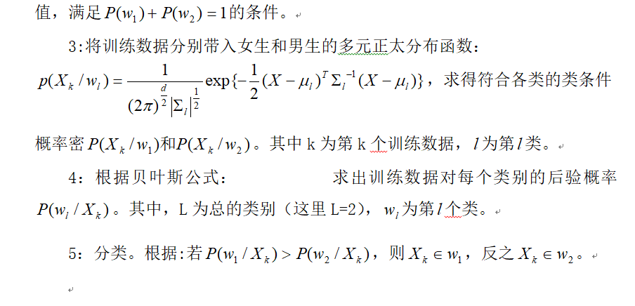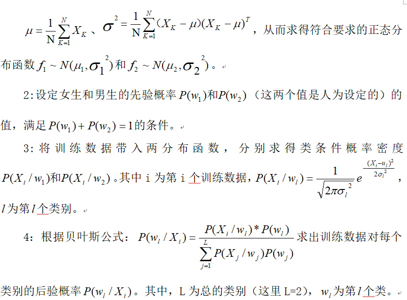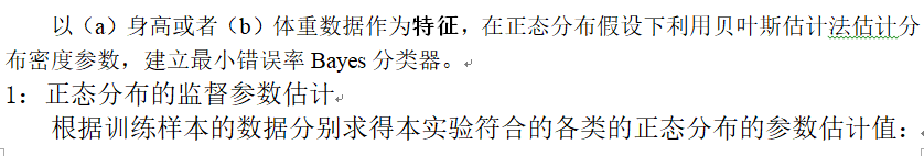 1. 以(a)身高或者(b)体重数据作为特征,在正态分布假设下利用贝叶斯估计法估计分布密度参数,建立最小错误率Bayes分类器。