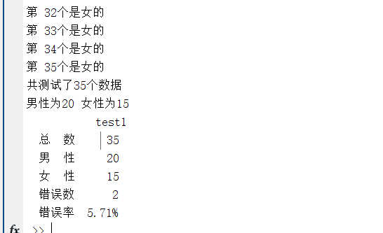 % fprintf('错误率:%f%%\n',error/length(man_woman)*100);