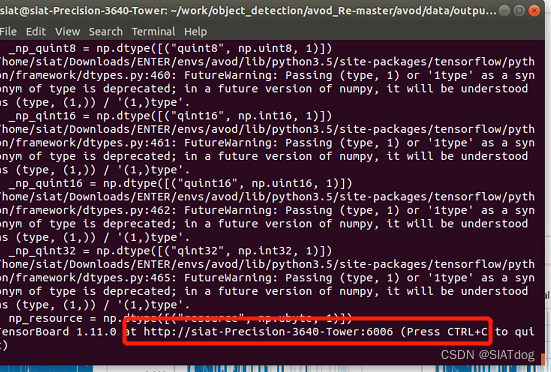 注意,这只是调用了tensorboard,输入指令以后终端会给出如下提示