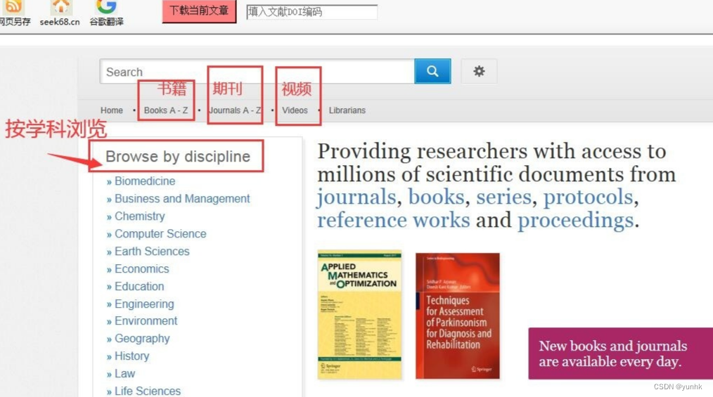 三、SpringerLink是全球最大的在线科学、技术和医学(STM)领域学术资源平台。Springer 的电子图书数据库包括各种的Springer图书产品,如专著、教科书、手册、地图集、参考工具书、丛书等。具体学科涉及:数学、物理与天文学、化学、生命科学、医学、工程学、计算机科学、环境科学、地球科学、经济学、法律。