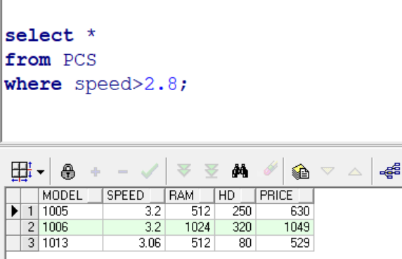 - pcs(model, speed, ram, hd, price) 电脑信息表