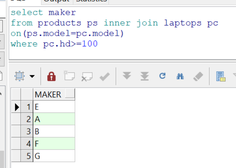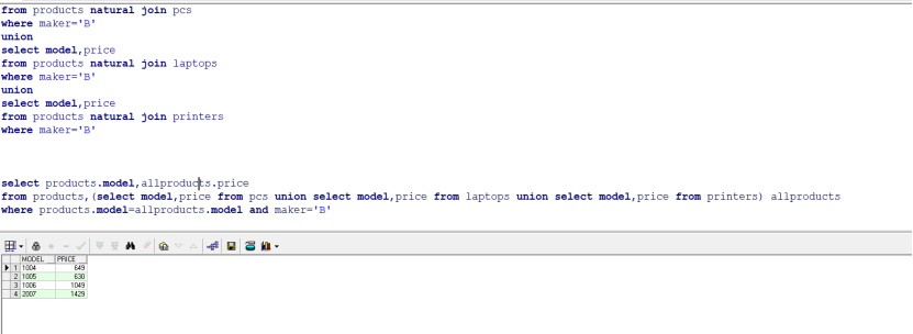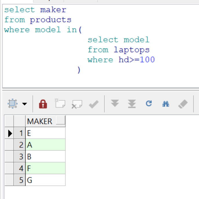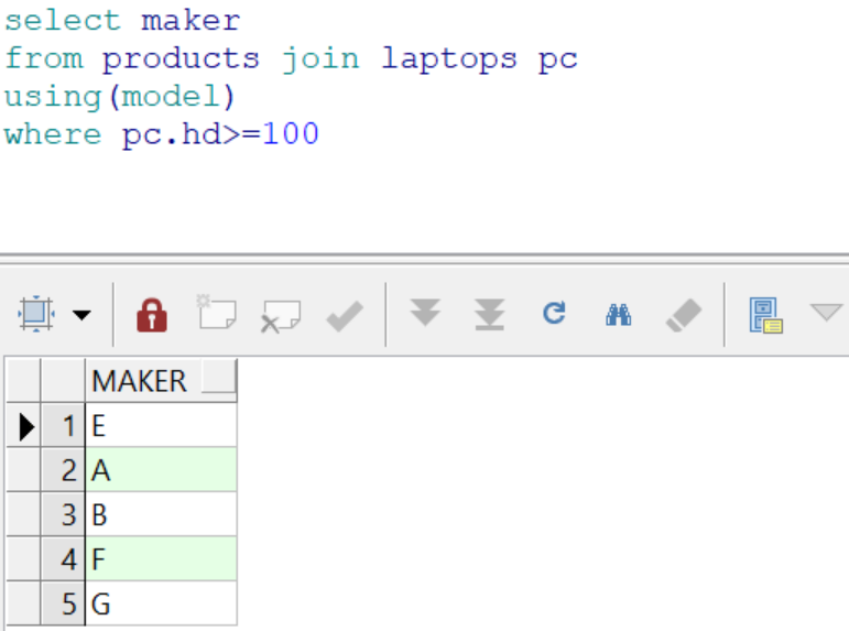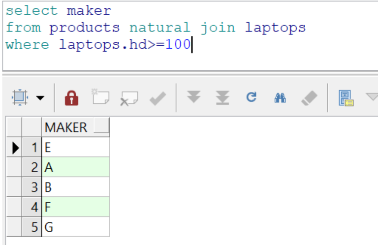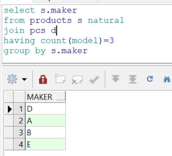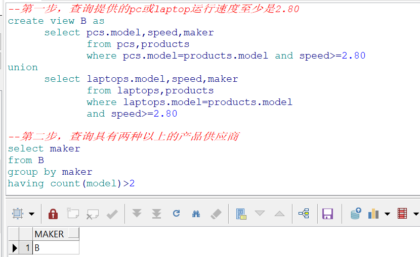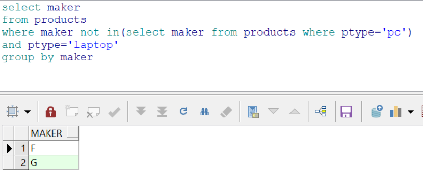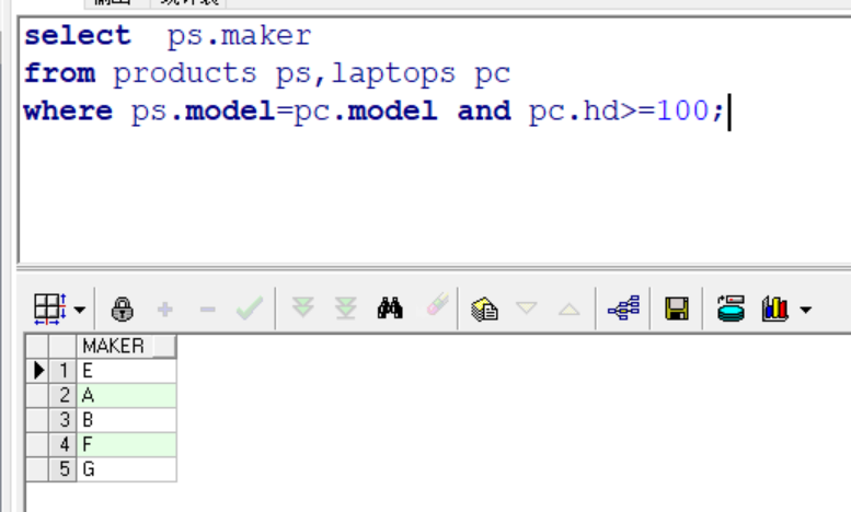- products(maker, model, type) 供应商信息表,maker,model,type取值为PC,Laptop,Printer