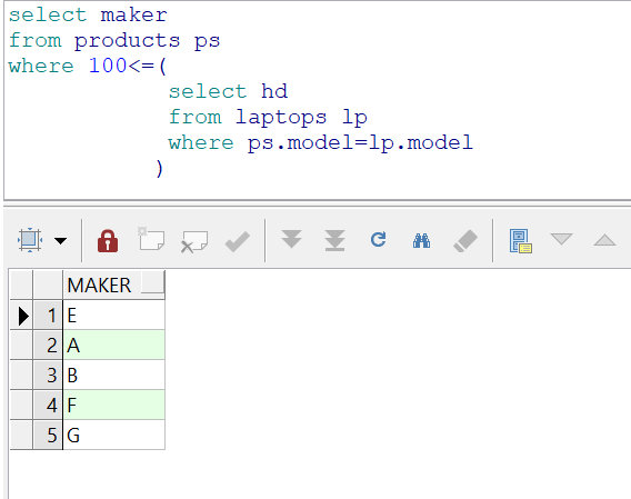 --不相关子查询(子查询的SQL语句可以单独执行)