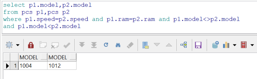 11) 查询具有相同运行速度和内存的PC电脑编号对