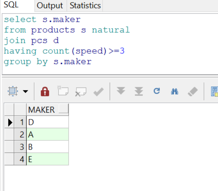 14) 查询提供的PC或laptop运行速度至少是2.80且有两种以上产品的供应商