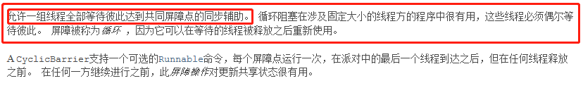 public enum State {/*** Thread state for a thread which has not yet started.*///运行(新生,就绪)NEW,/*** Thread state for a runnable thread. A thread in the runnable* state is executing in the Java virtual machine but it may* be waiting for other resources from the operating system* such as processor.*///运行RUNNABLE,/*** Thread state for a thread blocked waiting for a monitor lock.* A thread in the blocked state is waiting for a monitor lock* to enter a synchronized block/method or* reenter a synchronized block/method after calling* {@link Object#wait() Object.wait}.*///阻塞BLOCKED,/*** Thread state for a waiting thread.* A thread is in the waiting state due to calling one of the* following methods:* <ul>* <li>{@link Object#wait() Object.wait} with no timeout</li>* <li>{@link #join() Thread.join} with no timeout</li>* <li>{@link LockSupport#park() LockSupport.park}</li>* </ul>** <p>A thread in the waiting state is waiting for another thread to* perform a particular action.** For example, a thread that has called <tt>Object.wait()</tt>* on an object is waiting for another thread to call* <tt>Object.notify()</tt> or <tt>Object.notifyAll()</tt> on* that object. A thread that has called <tt>Thread.join()</tt>* is waiting for a specified thread to terminate.*///等待WAITING,/*** Thread state for a waiting thread with a specified waiting time.* A thread is in the timed waiting state due to calling one of* the following methods with a specified positive waiting time:* <ul>* <li>{@link #sleep Thread.sleep}</li>* <li>{@link Object#wait(long) Object.wait} with timeout</li>* <li>{@link #join(long) Thread.join} with timeout</li>* <li>{@link LockSupport#parkNanos LockSupport.parkNanos}</li>* <li>{@link LockSupport#parkUntil LockSupport.parkUntil}</li>* </ul>*///超时等待TIMED_WAITING,/*** Thread state for a terminated thread.* The thread has completed execution.*///终止TERMINATED;}