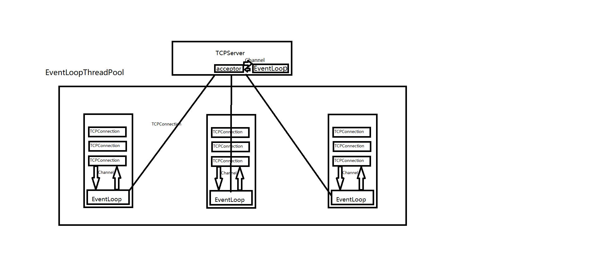 提供Eventloop:以轮询的方式供accepor分配tcpconnection给不同的线程eventloop。