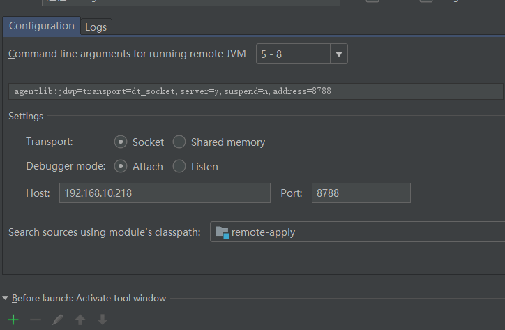 请在启动参数里配置-Xdebug -Xrunjdwp:transport=dt_socket,address=8788,server=y,suspend=n