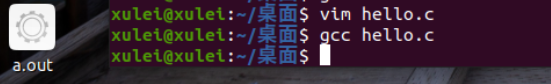 此时若重新创建一个C语言源文件hello.c,直接输入#gcc hello.c,则出现默认拓展文件a.out