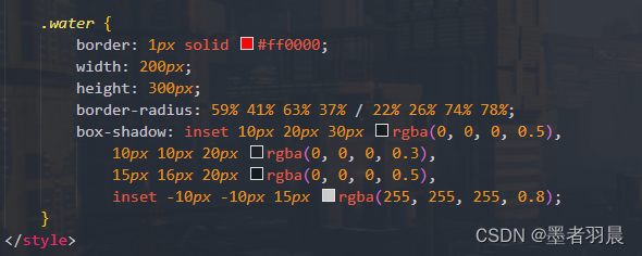 之后,那对于一个水滴怎么来实现,观察首先水滴是圆的,那就是要依靠border-radius属性,立体感不多说来自于box-shadow,那就简单了