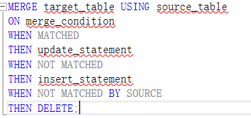 但是,SQL Server提供 MERGE 语句以用于同时执行三个操作。 以下是 MERGE 语句的语法