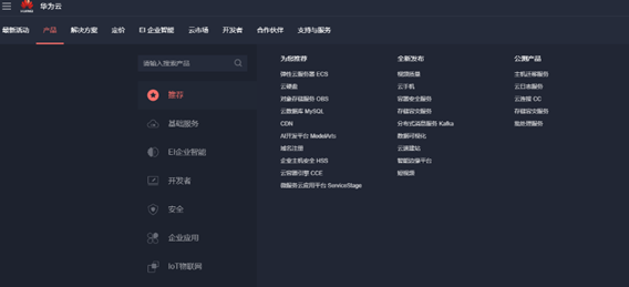 云计算能为我们提供什么样的服务,打开华为公有云网站来看一下,如图1-1。