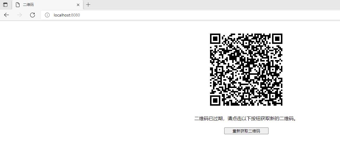public class QrcodeController {@Autowiredprivate RedisUtils redisUtils;/*** @description 二维码页面* @return java.lang.String**/@GetMapping({"/","/index"})public String index(ModelMap modelMap){modelMap.put("userId", 1);return "index";}/*** @description 生成二维码* @param request* @Param response* @return void**/@GetMapping("/getQrcode")@ResponseBodypublic void getQrcode(HttpServletRequest request, HttpServletResponse response) throws Exception {//二维码中的链接,需要公网网址才可以用手机扫描出来,本地测试开通natapp进行内网渗透String url = "http://qh22wg.natappfree.cc/scanQrcode";//过期时间,30slong expireTime = 30;//设置参数String random = request.getParameter("random");String userId = request.getParameter("userId");//生成二维码唯一标识String key = String.valueOf(System.currentTimeMillis());//设置二维码过期时间redisUtils.set(key,random,expireTime);//二维码中的内容String content = url + "?key=" + key + "&userId=" + userId;//二维码图片中间logoString imgPath = null;Boolean needCompress = true;//拿到图片流ByteArrayOutputStream out = QRCodeUtil.encodeIO(content, imgPath, needCompress);//返回二维码response.setCharacterEncoding("UTF-8");response.setContentType("image/jpeg;charset=UTF-8");response.setContentLength(out.size());ServletOutputStream outputStream = response.getOutputStream();outputStream.write(out.toByteArray());outputStream.flush();outputStream.close();}/*** @description 扫描二维码* @param request* @Param key* @Param userId* @return java.lang.String**/@GetMapping("/scanQrcode")@ResponseBodypublic String scanQrcode(HttpServletRequest request, String key, String userId) throws Exception {if(redisUtils.exists(key)){redisUtils.set(userId + "_qrcode_status", "success");return "扫描成功";}return "二维码失效, 请重新扫描";}/*** @description 验证扫描二维码* @param userId**/@RequestMapping("/confirmQrcode")@ResponseBodypublic AjaxResult confirmQrcode(String userId){if(redisUtils.exists(userId + "_qrcode_status")){redisUtils.remove(userId + "_qrcode_status");//扫描成功后跳转新链接return AjaxResult.success("扫描成功", "/success");}return AjaxResult.error("二维码失效, 请重新扫描");}/*** @description 扫描二维码成功跳转页面* @param* @return java.lang.String**/@GetMapping("/success")public String success(ModelMap modelMap){return "success";}}