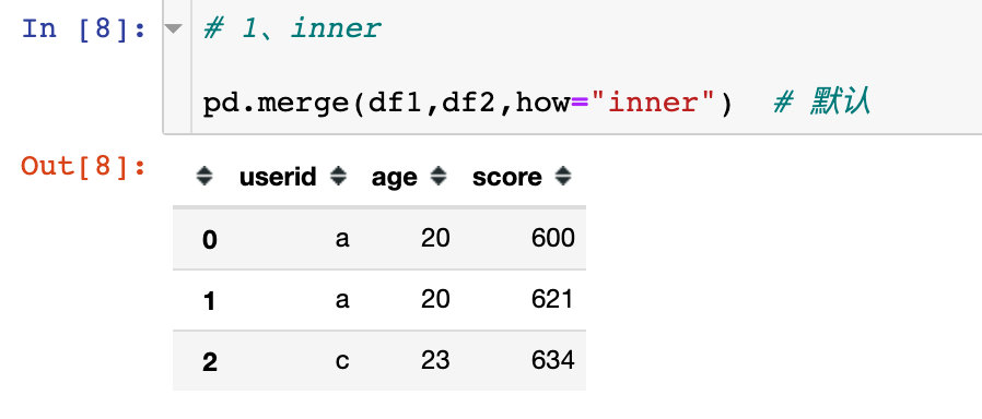 ⚠️上面的图解过程就是默认的使用how=“inner”