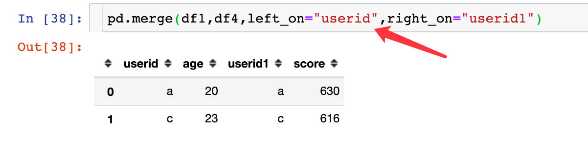 - 两个数据框df1(left)、df2(right)有相同的字段userid