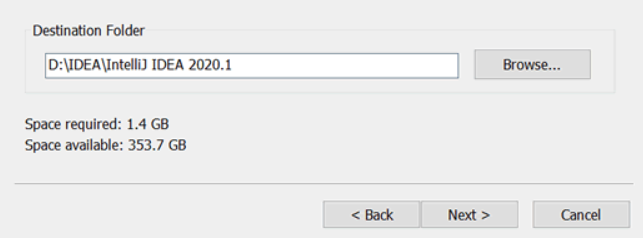 5-设置 IDEA 的安装目录,建议不要安装在系统盘(通常 C 盘是系统盘),这里选择安装到 D 盘。