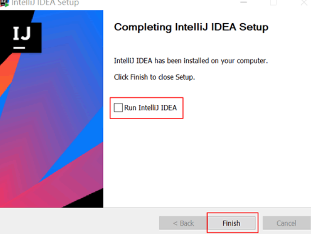 8-等待安装进度条达到 100% 后,点击 Finish,IntelliJ IDEA 就安装完成了。可以勾选 Run IntelliJ IDEA 选项,表示关闭此窗口后运行 IDEA。