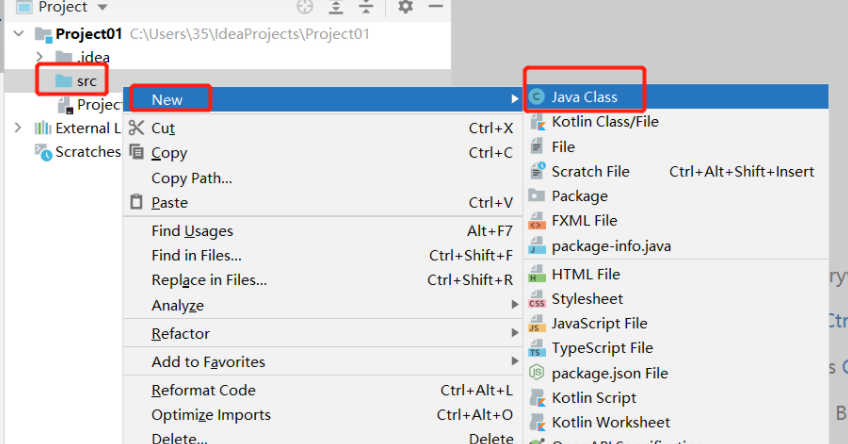创建好后,在 src 下右键选择 New -> Java Class,输入名称 Main。