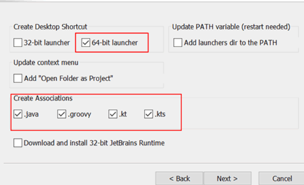 - Download and install 32-bit JetBrains Runtime:下载并安装 JetBrains 的 JRE。如果已经安装了JRE,则无需勾选此项;