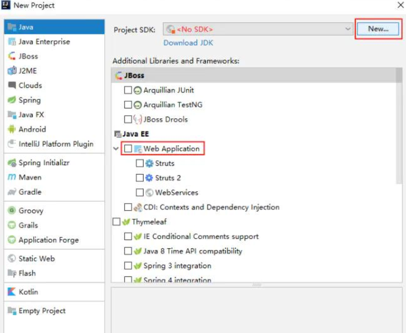 如果要创建 Web 工程,则需要勾选上面的 Web Application。如果不需要创建 Web 工程的话,则不需要勾选。这里先不勾选,我们只是创建简单的 Java 工程,点击 Next。