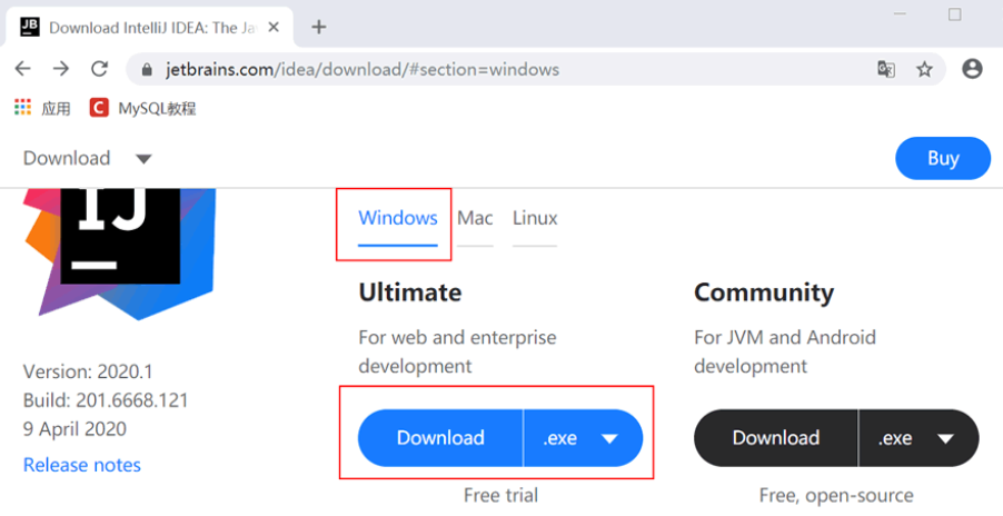- 进入 IDEA 官方下载页面,点击 Download 下载。