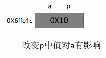 通过上面引用传递传递案例我们可以看到,调用fun2(a)时,传递给p的是a的地址,所以p和a的地址都是0x6ffe1c,所以p就是a,改变p当然能改变a。示意图如下: