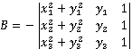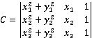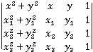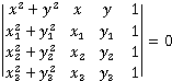 三个点确定三条方程,为了求出四个未知数再写一个在圆上的点凑成行列式