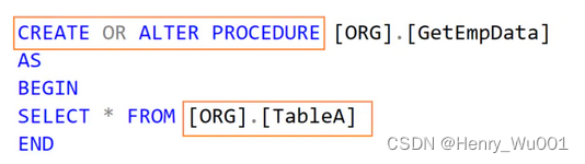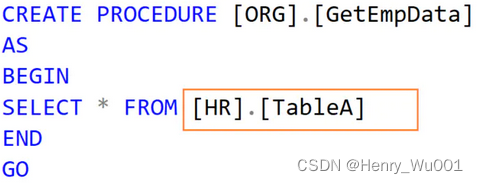 但是,在SP部,代码仍然引用[HR].[TableA] 模式。