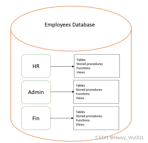 例如,HR 部门的表和存储过程应该在[HR] 架构中进行逻辑分组。同样,财务部门表应该在 [Fin] 模式中。每个架构(逻辑组)都包含SQL Server 对象,例如表、存储过程、视图、函数、索引、类型和同义词。