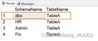 例如,如上所示,我们在所有架构中都有[TableA]。因此,如果您直接选择记录而不指定架构,它会在默认 DBO 架构中查找对象。因此,需要指定模式名称,
