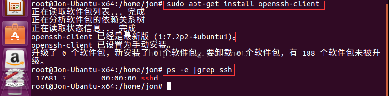 如果当前Ubantu系统为CD安装版时,我们可能还需要安装ssh-client: