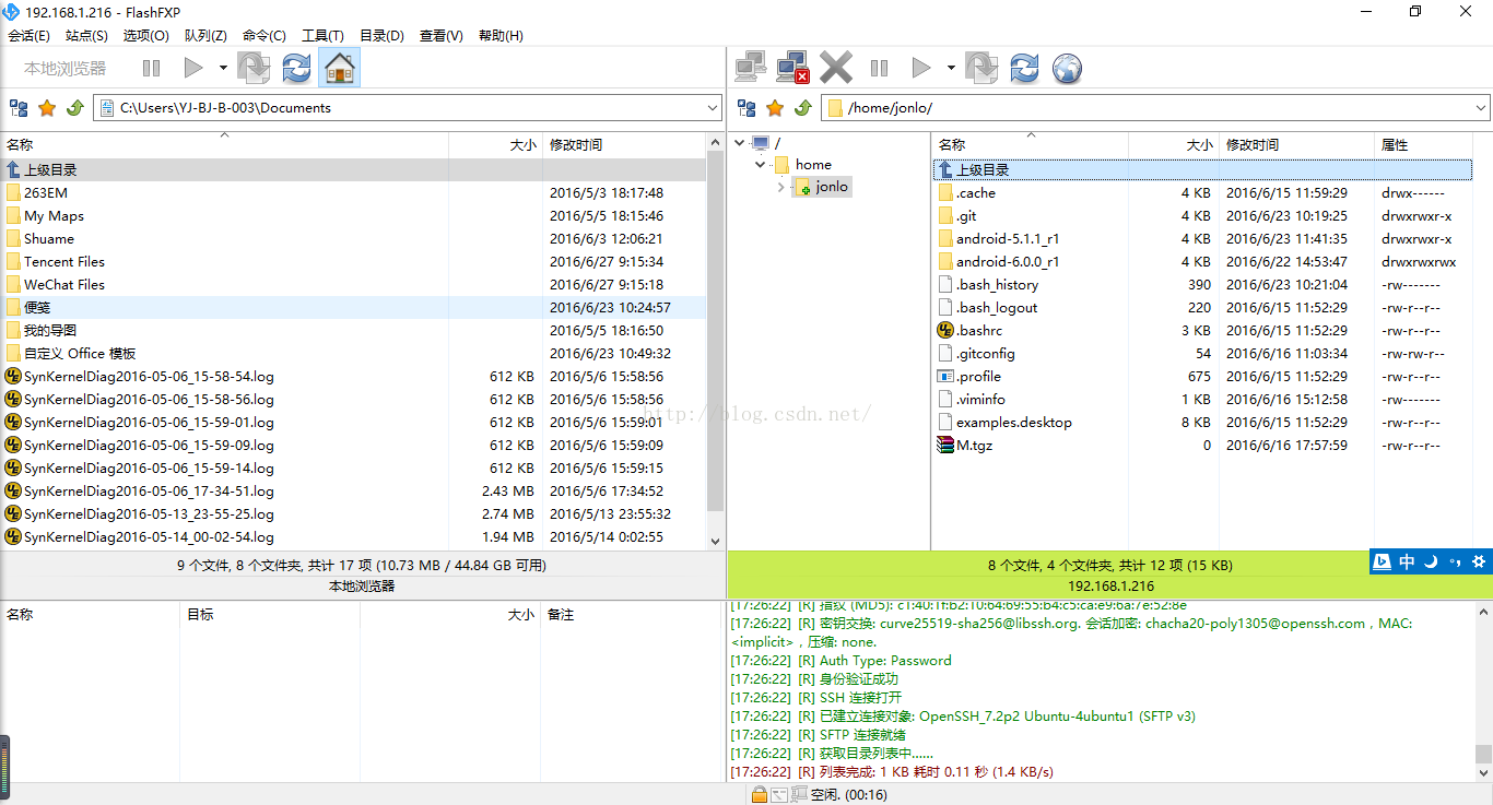 首次向编译服务器上传初始化源码,一般是由管理员账户执行,较比简便的的方式就是使用FTP软件(如Xshell、FlashFXP、Xftp等)登陆服务器,直接拖进对应的目录。
