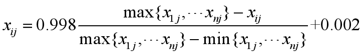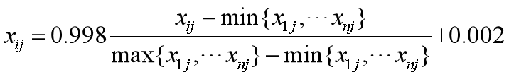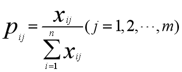 由于各项指标计量单位并不统一,因此在计算综合权重前先要对它们进行归一化处理,即把指标的绝对值转化为相对值,并令