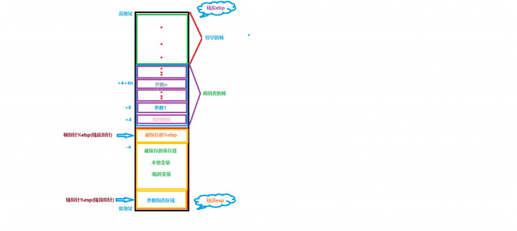 既然今天分析的是栈帧,那么肯定是在栈区展开研究,下面为大家总体上画一张栈帧结构图: