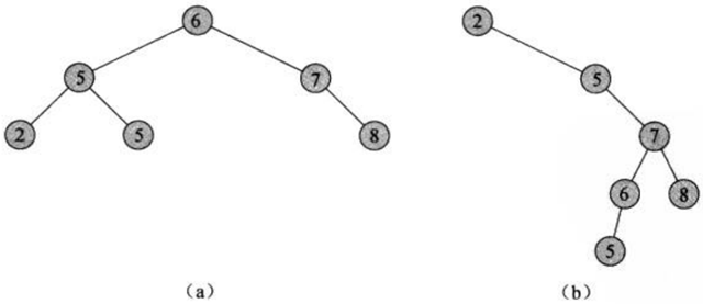 - 若它的右子树不空,则右子树上所有结点的值均大于它的根结点的值;