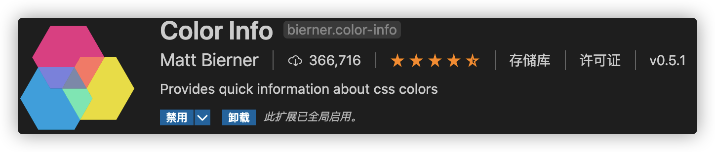 这个便捷的插件,将为你提供你在 CSS 中使用颜色的相关信息。你只需在颜色上悬停光标,就可以预览色块中色彩模型的(HEX、 RGB、HSL 和 CMYK)相关信息了。