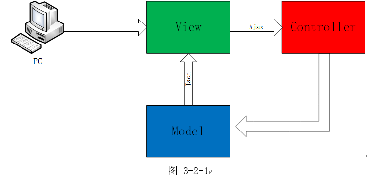 根据这种模式,也就是说我们输入的是AJAX请求,输出的是JSON数据。如果将浏览器这一端视为前端,而服务器那一端视为后端的话,可以将以上改进后的MVC模式简化为以下模式,如下图3-2-2所示: