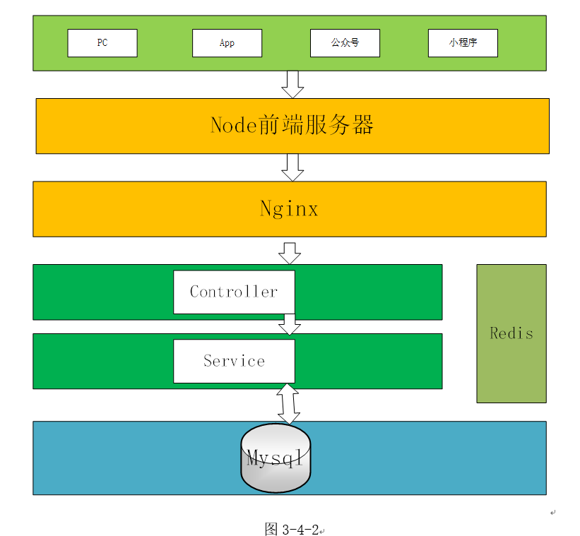 1、前端请求(可以是pc端,app,小程序,公众号)到node前端服务器,然后通过nginx转发进入 controller层,该层对外提供restful接口。