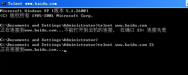 输入telnet测试端口命令: telnet IP 端口 或者 telnet 域名 端口