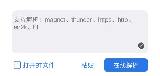 然后直接将资源链接复制粘贴到下面框中在线解析,可以看到支持解析的方式还是很多的,磁力、http、ed2k...有点迅雷下载那意思了